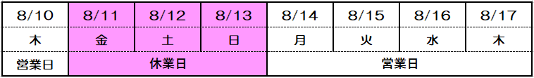 お盆期間の営業のお知らせ