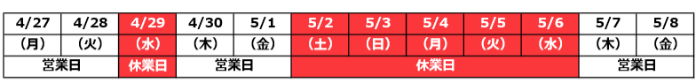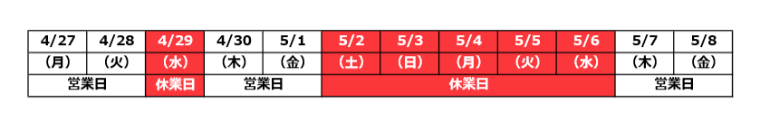 ゴールデンウィークの営業のお知らせ